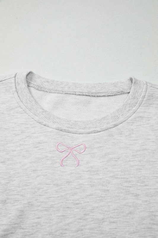 Bow Embroidered Pullover and Shorts Set